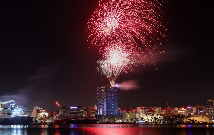 Από τον φωταγωγημένο Πύργο του Πειραιά δόθηκε το σύνθημα της αντίστροφης μέτρησης για την έλευση του νέου έτους και στη συνέχεια δεκάδες πυροτεχνήματα και βεγγαλικά φώτισαν την πόλη και τη θάλασσα του Πειραιά, στέλνοντας μηνύματα χαράς και αισιοδοξίας για τον καινούργιο χρόνο.